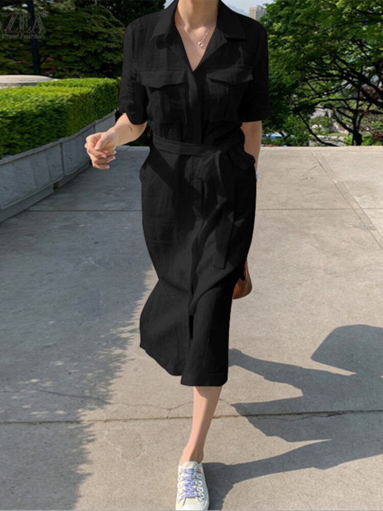 100% Bomull Sidelommer Snøring Sommerferiekjole For Kvinner