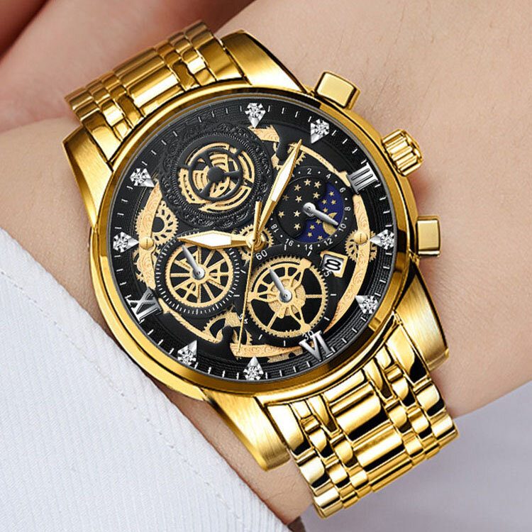 3 Farger Rustfritt Stål Legering Menn Forretningsmote Vanntette Runde Kvarts Klokker