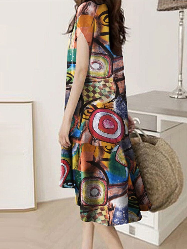 Abstrakt Malt Ruffled Kortermet Høy-lav Hem Midi-kjole