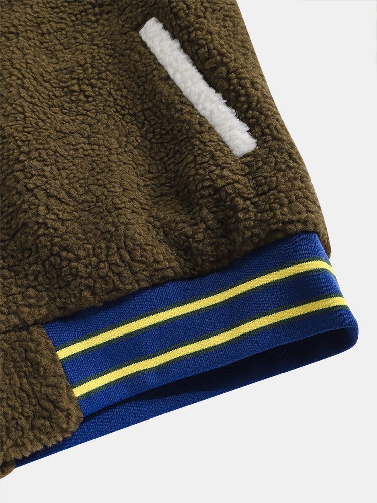 Baseball-krage Med Trykknapper Tegneserie-lappet Fleecejakke For Menn