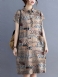 Blomster Abstrakt Paint Print Button Pocket Lapel Midi Dress
