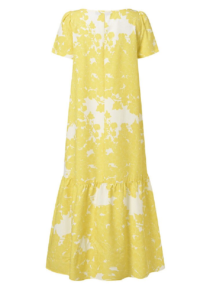 Blomstertrykk Firkantet Krage Patchwork Kortermet Holiday Casual Maxikjole