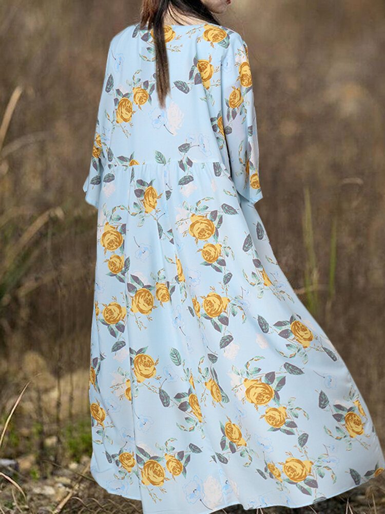 Bohemian Raglan-ermer Skjøtet Blomster Løs Maxikjole For Kvinner