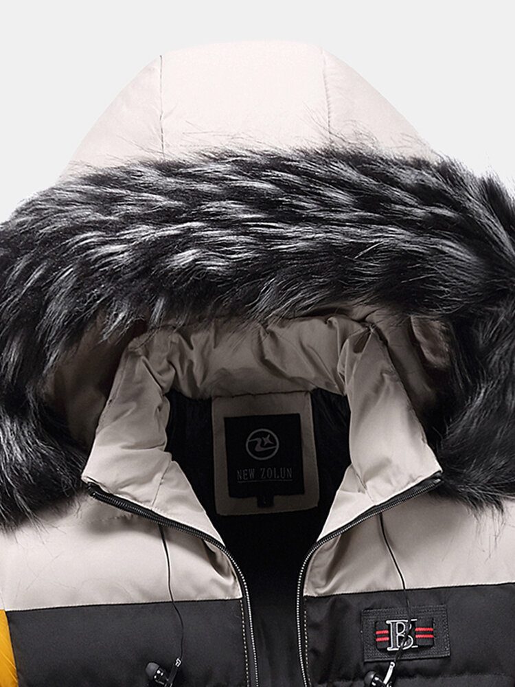 Bokstavmønster For Menn Sidelomme Tykk Pels Avtagbar Hettedunjakke