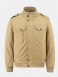 Bomull Herre Multilomme Ensfarget Stativ Krage Glidelåsknapp Langermet Verktøyjakker