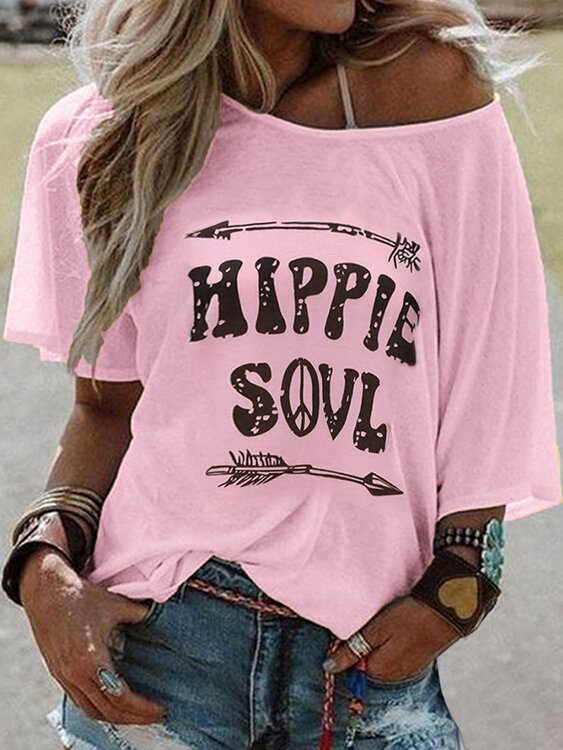 Casual Letter Print Rund Hals Kortermede T-skjorter