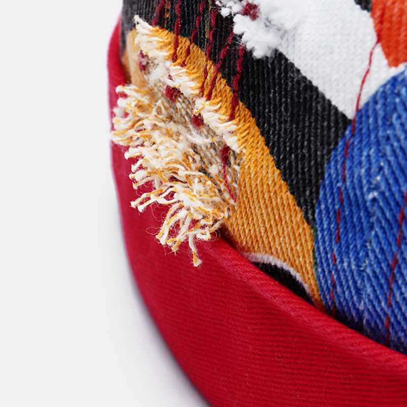 Collrown Unisex Farget Graffiti Skull Cap Broken Hole Patch Utendørs Uformell Brimless Beanie Landlord Cap
