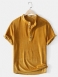 Corduroy Herre Ensfarget Tekstur Kortermet Casual Henley Skjorter