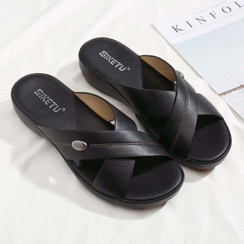 Dame Beach Comfy Peep Toe Cross Strap Kiler Hælsandaler
