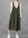 Dame Corduroy Justerbar Skulderstropp V-hals Solid Sidelomme Uformell Midikjole