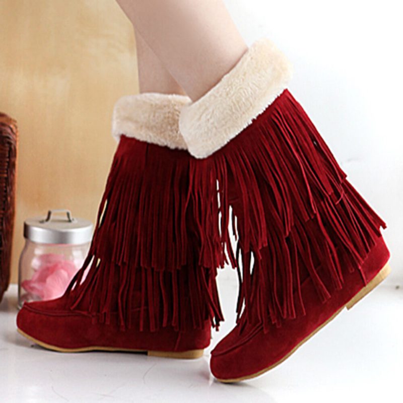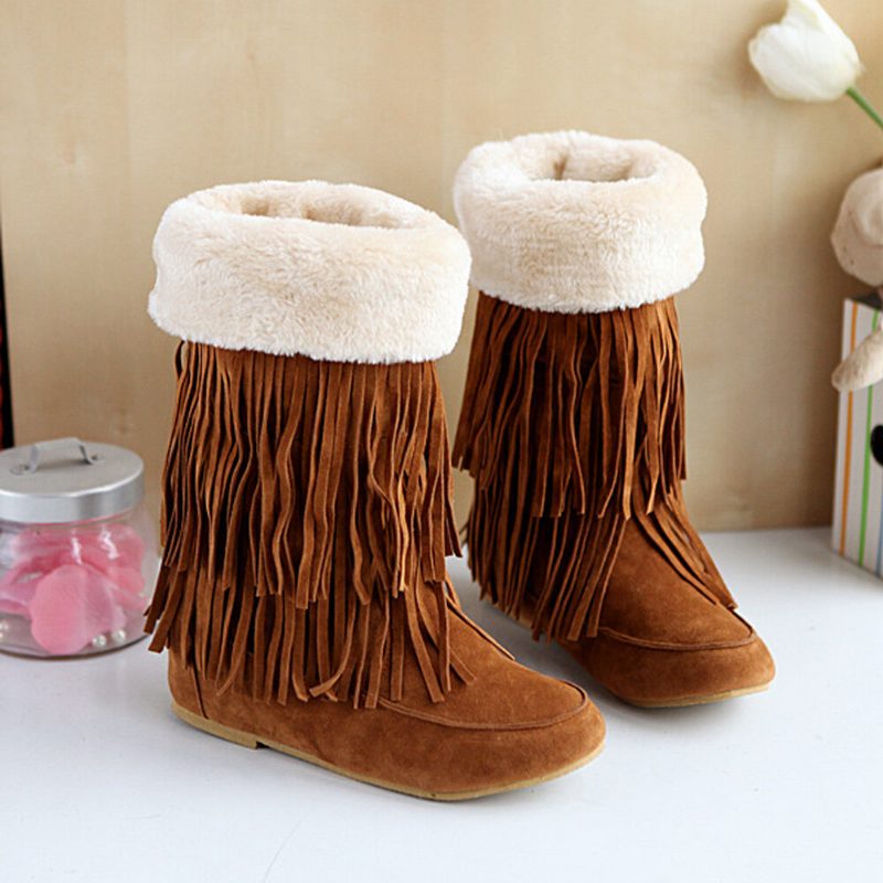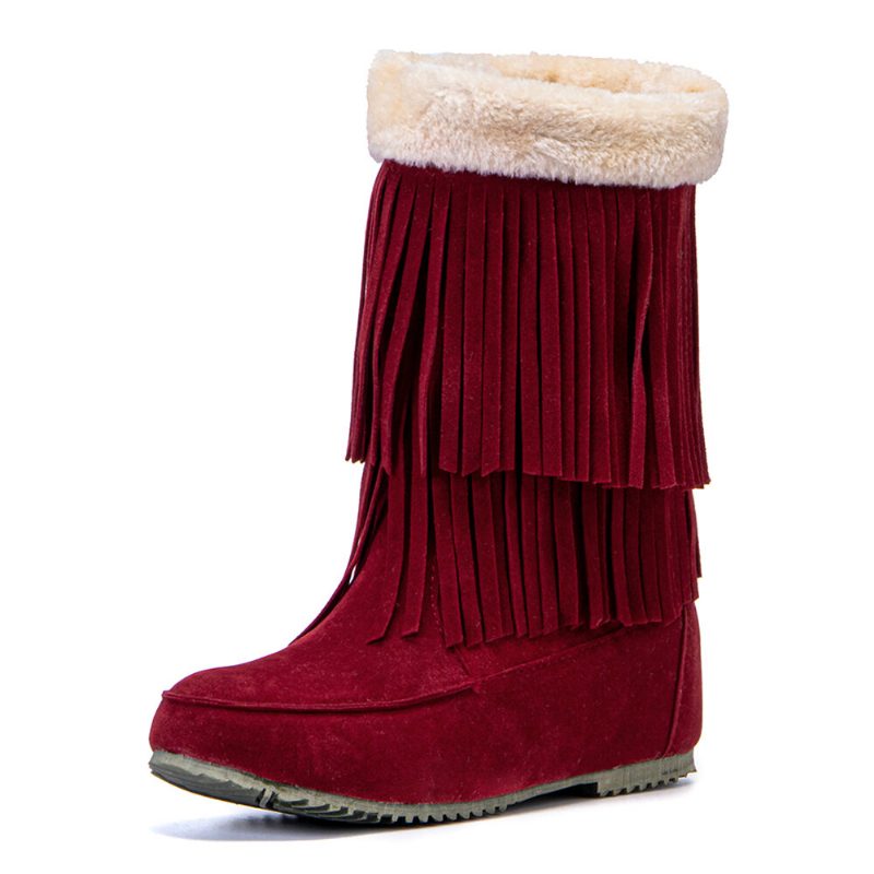 Dame Duskstøvler Varme Fluff Flanging Mid-calv Snøstøvler