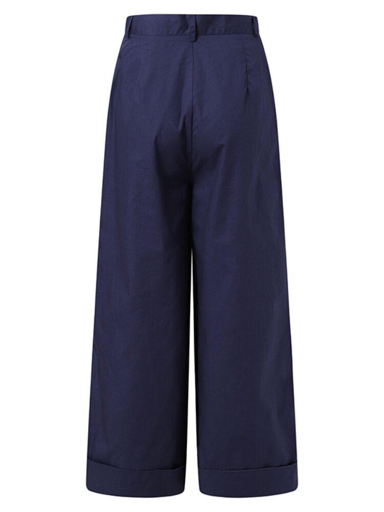 Dame Ensfarge Plissert Ol Høyt Midjet Brede Benbukser Med Lomme