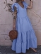 Dame Ensfarge Volanger Ermer Bohemian U-hals Lagdelt Lagdelt Kjole