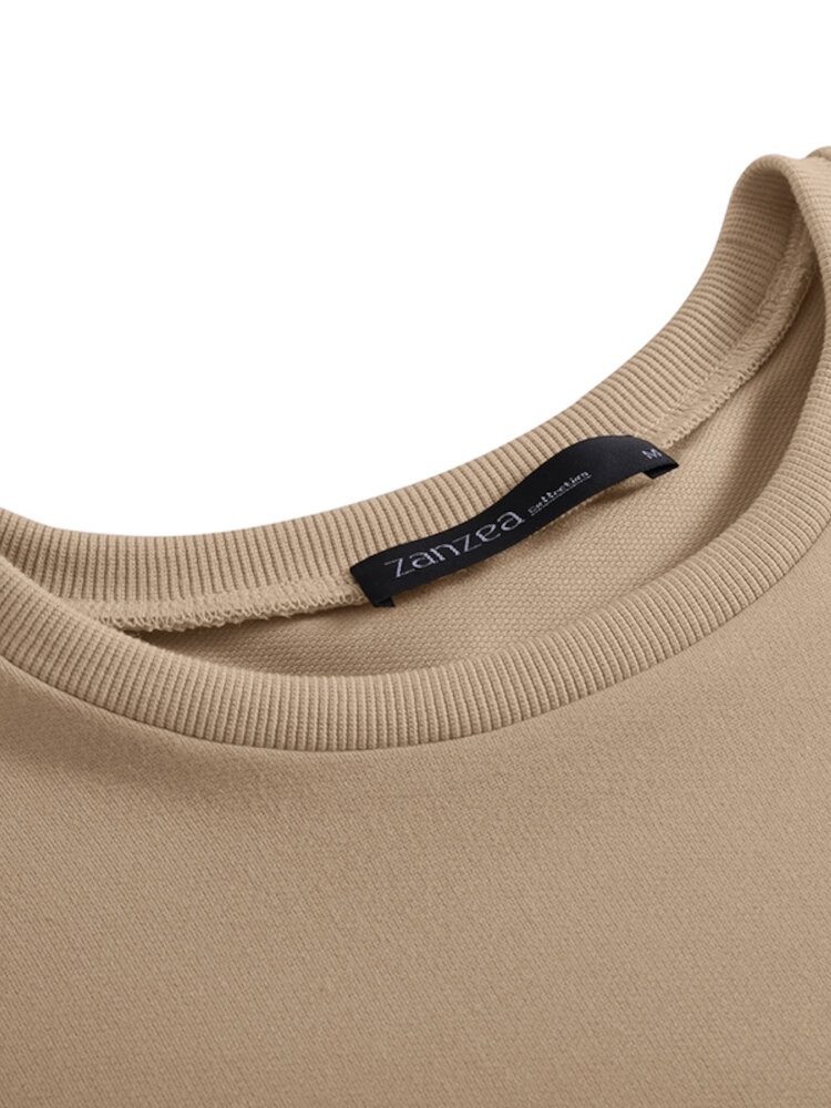 Dame Ensfarget Sweatshirtkjole Ruffle Puffermer Legglengde Midikjoler Med O-hals