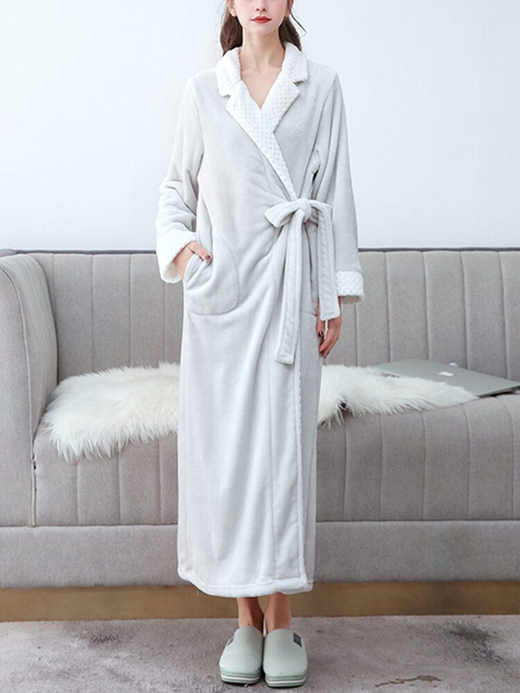 Dame Flanell Langermet Sashes Hjem Casual Robes Med Lomme