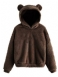 Dame Fluffy Kaniner Ører Solid Tegneserie Søt Hette Patchwork Langermet Uformell Genser