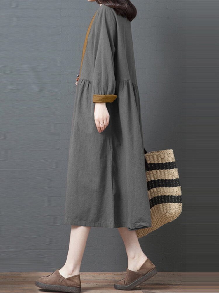 Dame Kontrast Patchwork-knapp Foran Uformelt Langermet Maxi-skjortekjoler