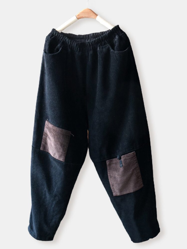Dame Kontrastfarge Corduroy Snøring Midjelapp Uformelle Haremsbukser