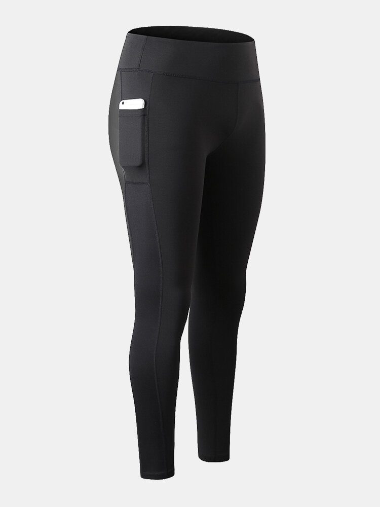 Dame Kontrastfarge Quick Dry Moisture Wicking Pocket Sport Bukser Med Høy Midje
