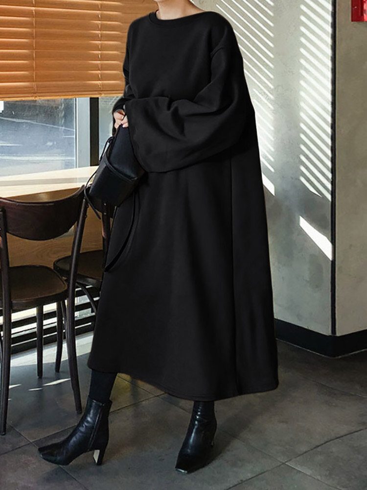 Dame Løs Tykk Genser Solid Legglengde Uformelle Midi-kjoler