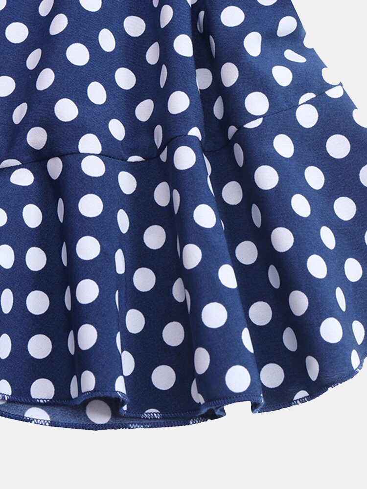 Dame Med Prikkete Asymmetriske Volanger Uformelle Maxikjoler Med Lange Ermer