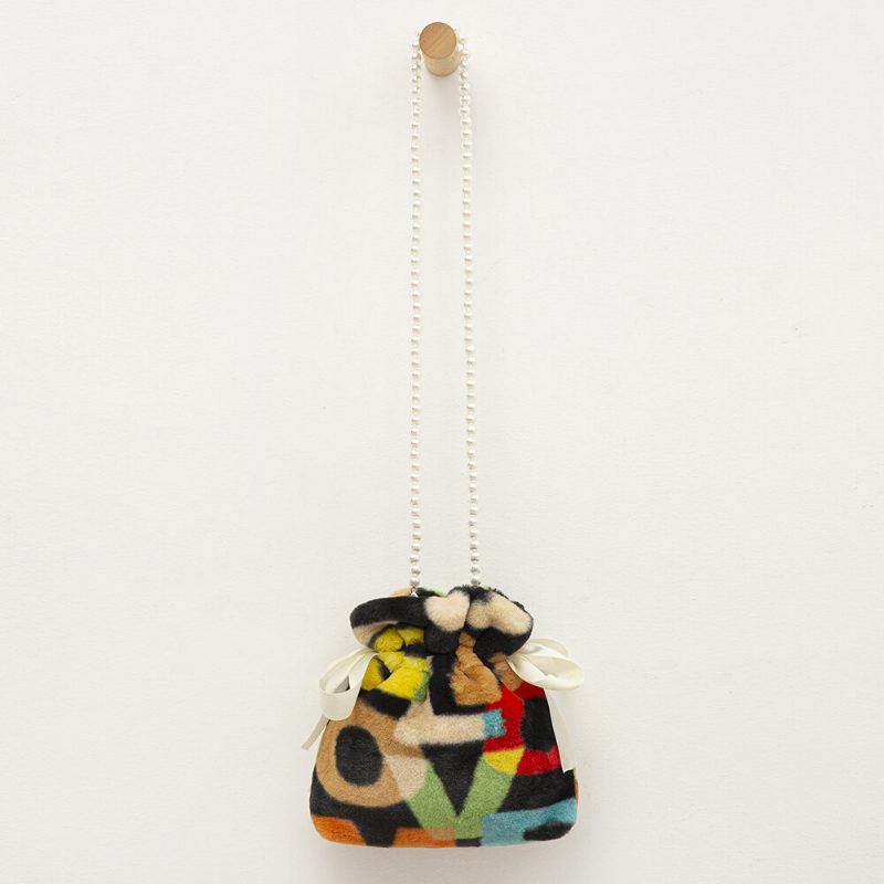 Dame Plysj Tie-dye Patchwork Pearl Bowknot Chain Skulderveske Crossbody Bag