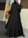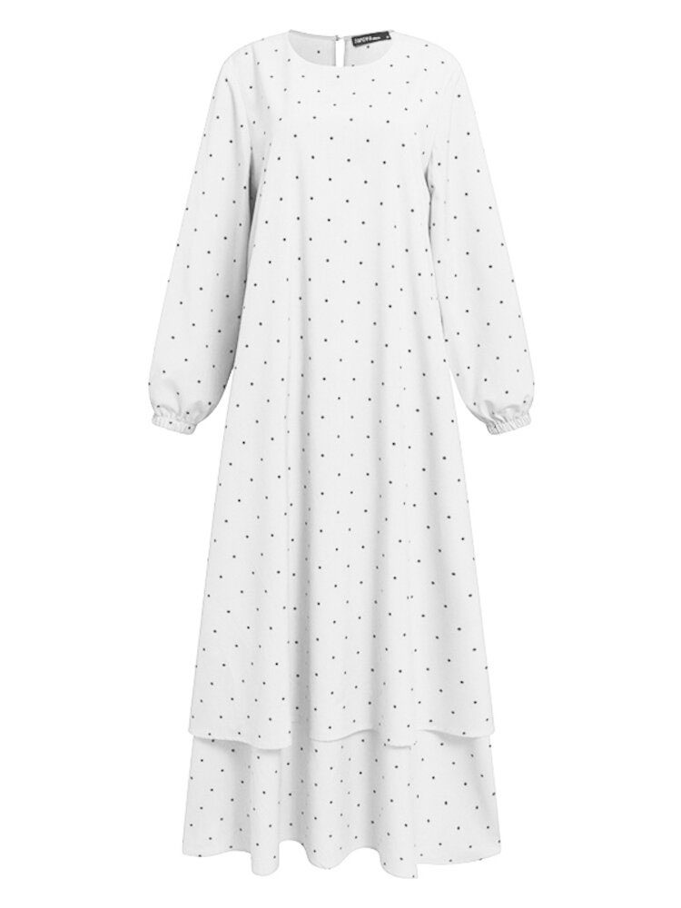 Dame Polka Dot Kaftan Tunika Elasyic Mansjettknapper Gulvlengde Hele Ermer O-hals Midikjoler