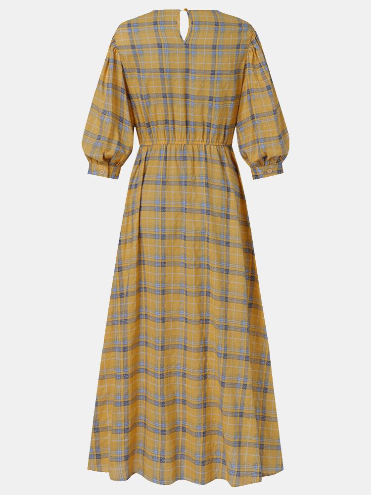 Dame Rutete Rundhals Halv Puffermer Casual Maxi Kjoler