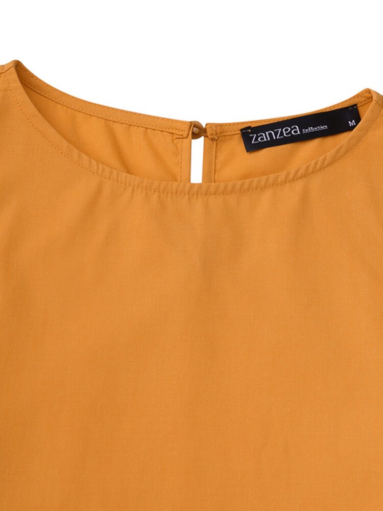 Dame Solid Crew Neck Layered Back Buttons Abaya Kaftan Dress