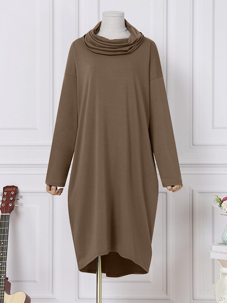 Dame Turtleneck Plissert Skjøt Solid Legglengde Løse Midikjoler