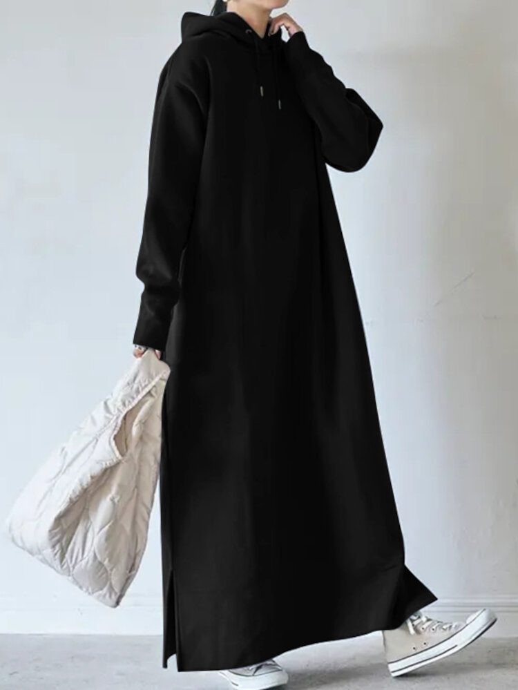 Dame Tykke Pusermer Løs Genser Maxi Lengde Hette Uformelle Midi-kjoler