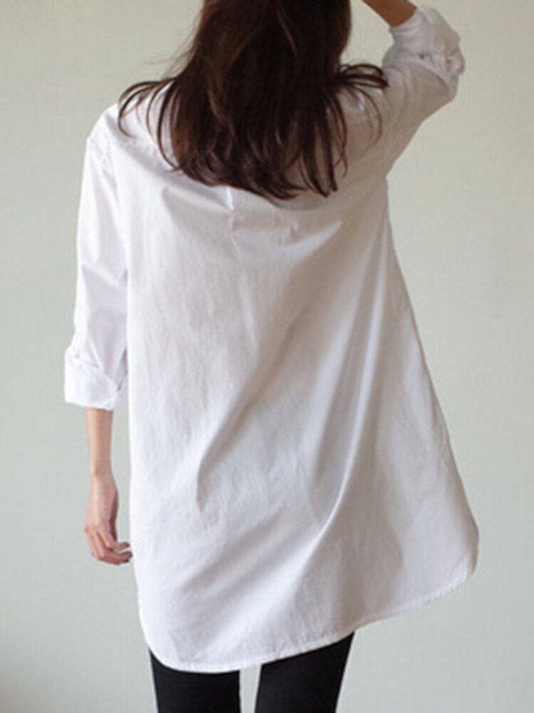 Dameskjorte Ensfarget Mansjettknapper Langermet Uformelle Midi-kjoler