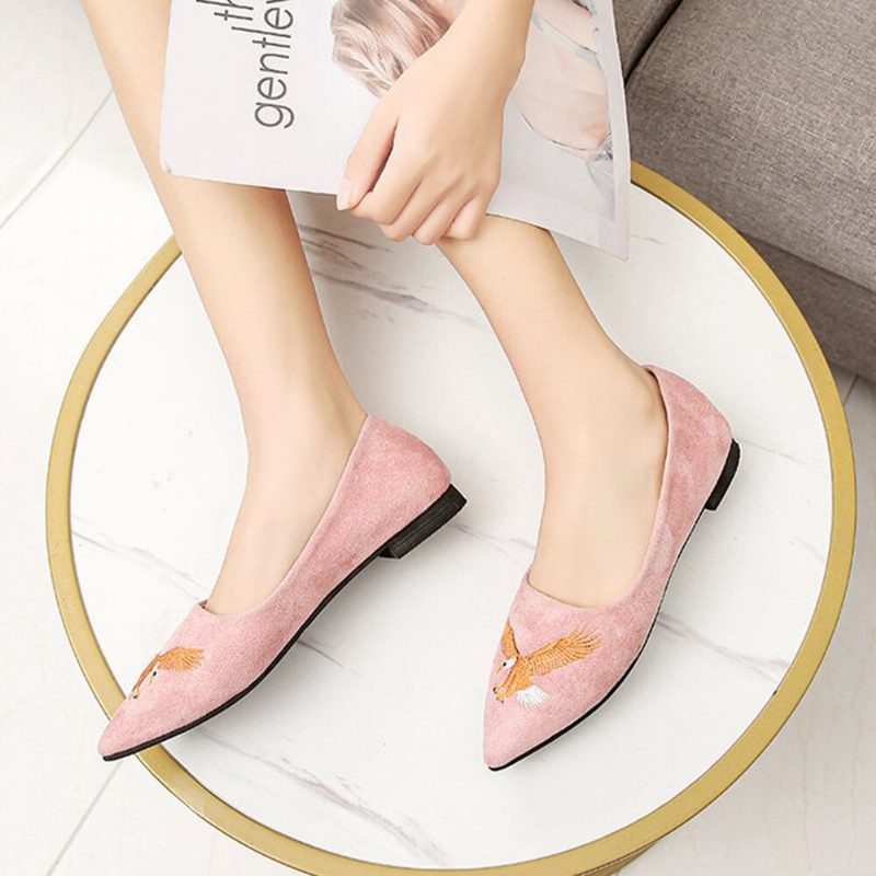 Damespiss Semsket Fuglebrodert Dekor Flats Sko