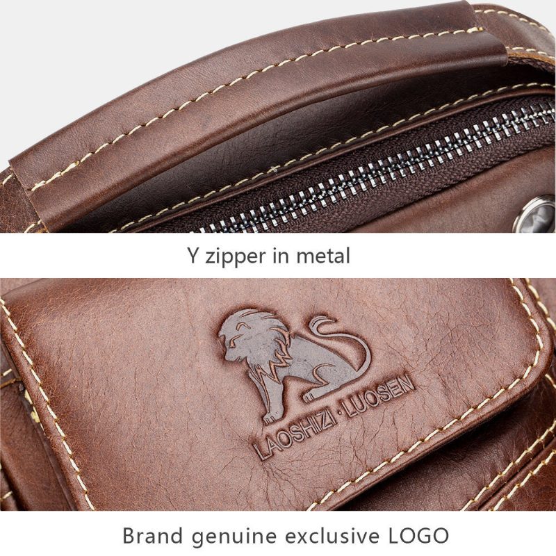 Ekte Skinn For Menn Slitasjebestandig Hodetelefonhull Multilomme Vintage Crossbody Vesker Skulderveske