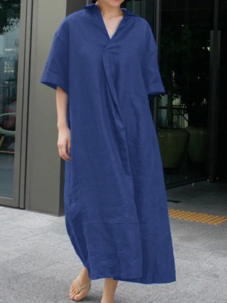 Ensfarget Halvermet Jakkeslag Løs Maxikjole I Bomull