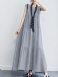 Ensfarget O-hals Ermeløs Ruffles Hem Plissert Maxikjole