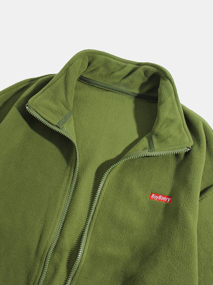 Ensfarget Polar Fleece Drop Shoulder-jakke For Menn Med Lomme