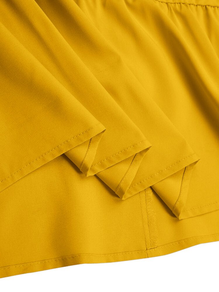 Ensfarget V-hals Langermet Plissering Holiday Streetwear Casual Maxikjole