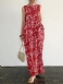 Ermeløs Print Lomme Med Rund Hals Mønster Figur Maxi Kjole