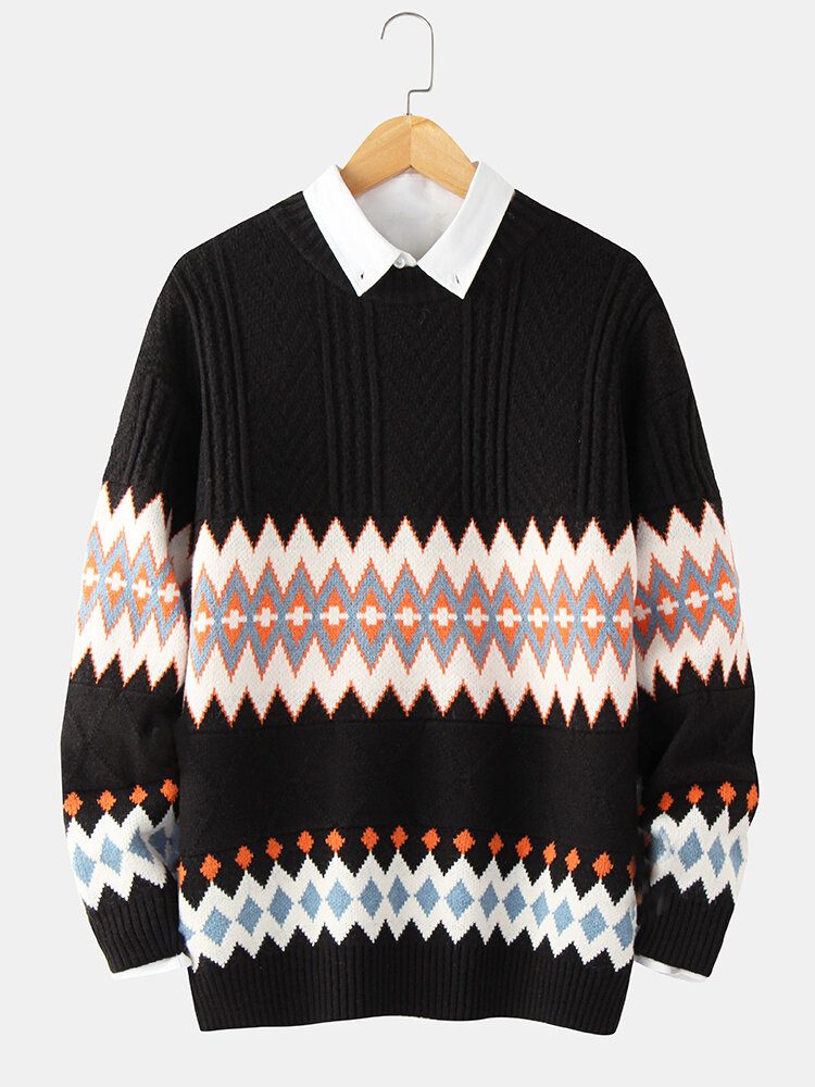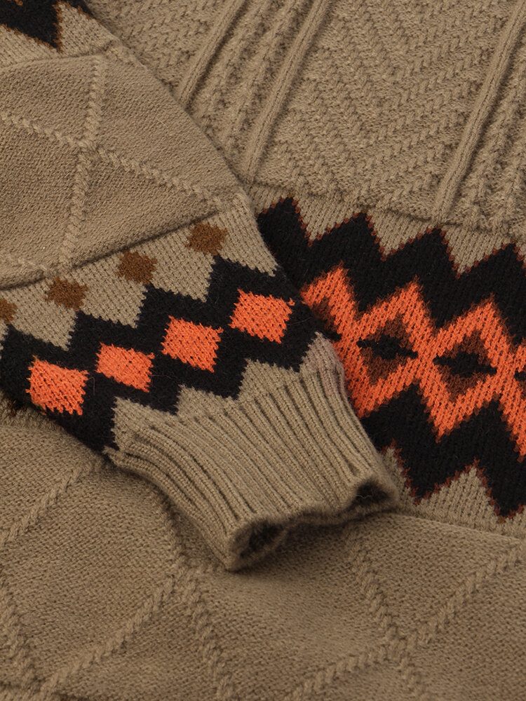 Geometrisk Strikket Varm Tykk Kabel For Menn Med Lange Armer