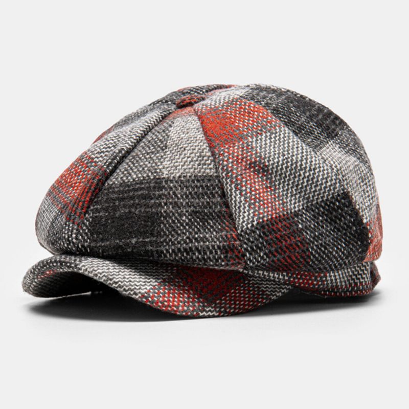 Herre Bomullsgittermønster Åttekantet Lue Britisk Stil Utendørs Vindtett Varm Flate Lue