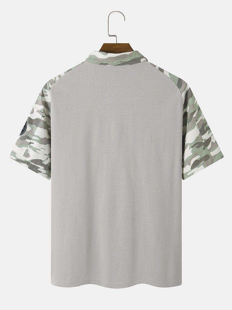 Herre Camo Patchwork Ikonmønster Halv Glidelås Myk Pustende Kortermet T-skjorte