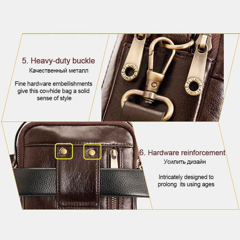 Herre Ekte Skinn Multifunksjon Multi-bære 4 Kortspor Crossbody Vesker Midjeveske