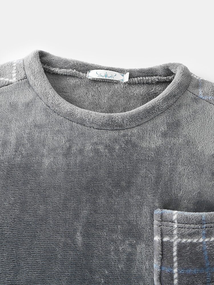Herre Flanell Rutete Patchwork Genser Warm Thicken Loose Pants Home Comfy Pyjamas Set