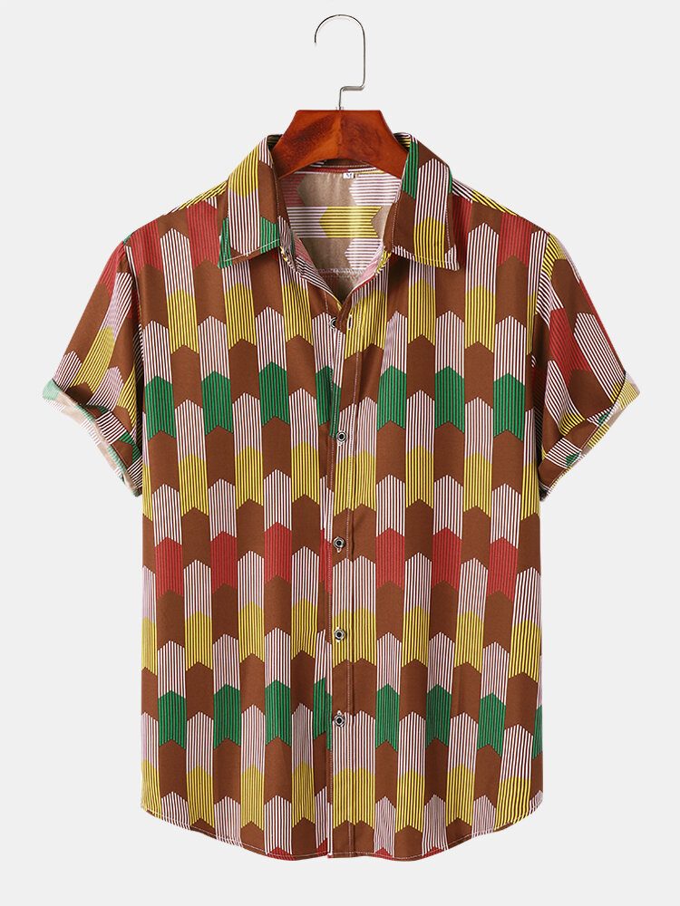 Herre Geometrisk Nålestripet Trykk Jakkeslag Kortermet Hem Mansjett Fritidsskjorter