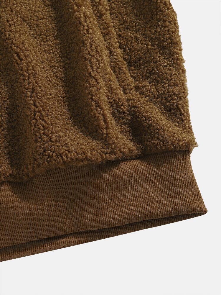 Herre Glidelås Foran Kontrast Rutete Lappet Lomme Løs Teddyjakke