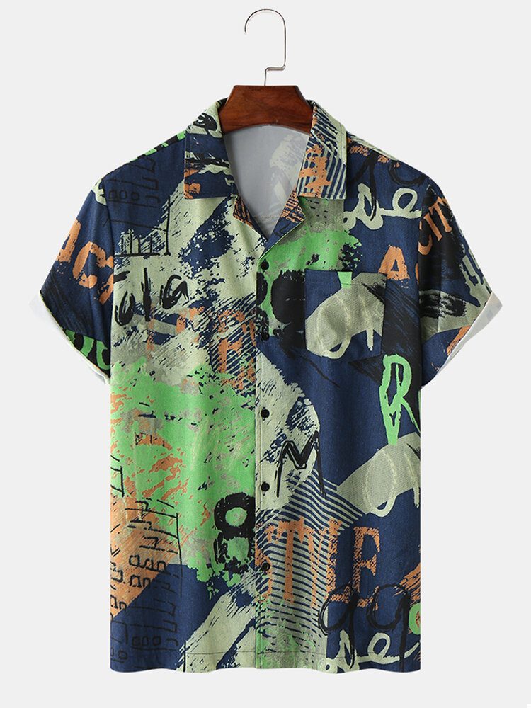 Herre Graffiti Letter Mønster Kortermede Myke Pustende Grasiøse Skjorter