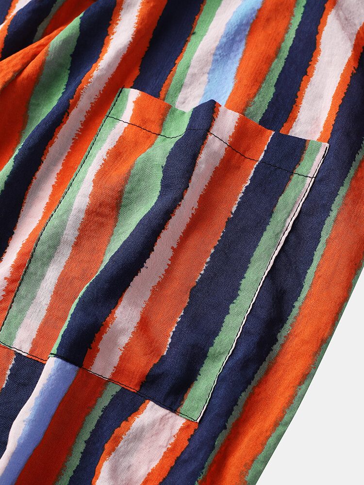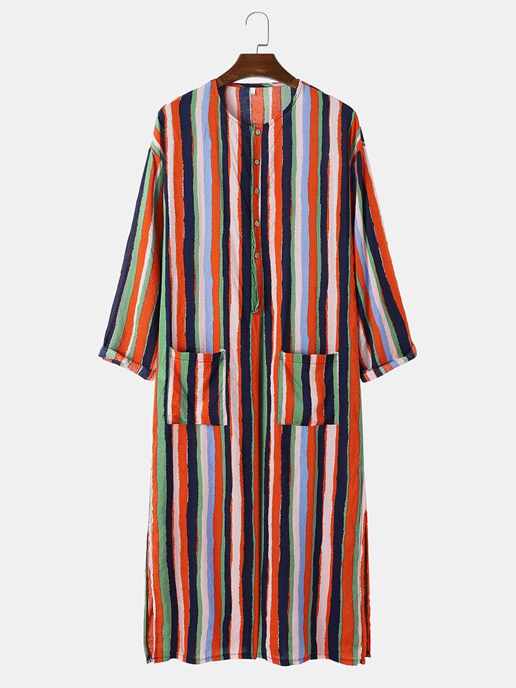 Herre Kontraststripete Halvknapper Sidedelt Dobbel Lomme Myke Langermede Kapper