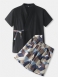 Herre Med Geometrisk Trykk V-hals Topp Elastisk Midjelomme Japansk Stil Badstuedrakt Hjemmepyjamas