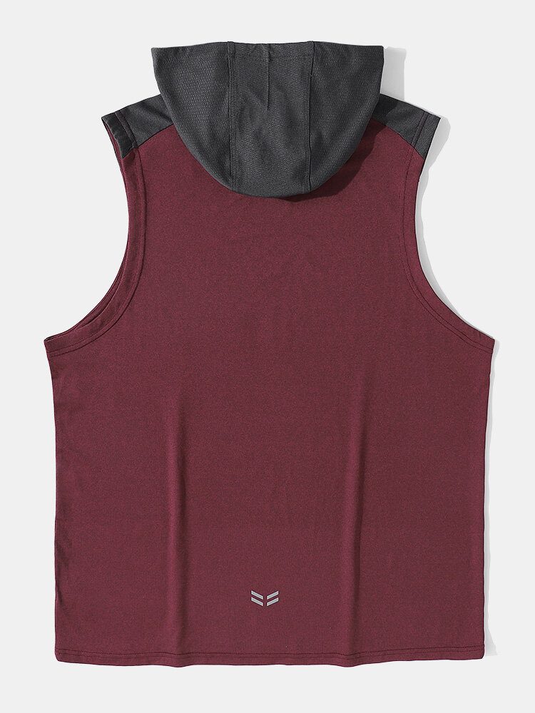 Herre Patchwork Hette Snøring Ermeløs Pustende Løse Activewear Topper